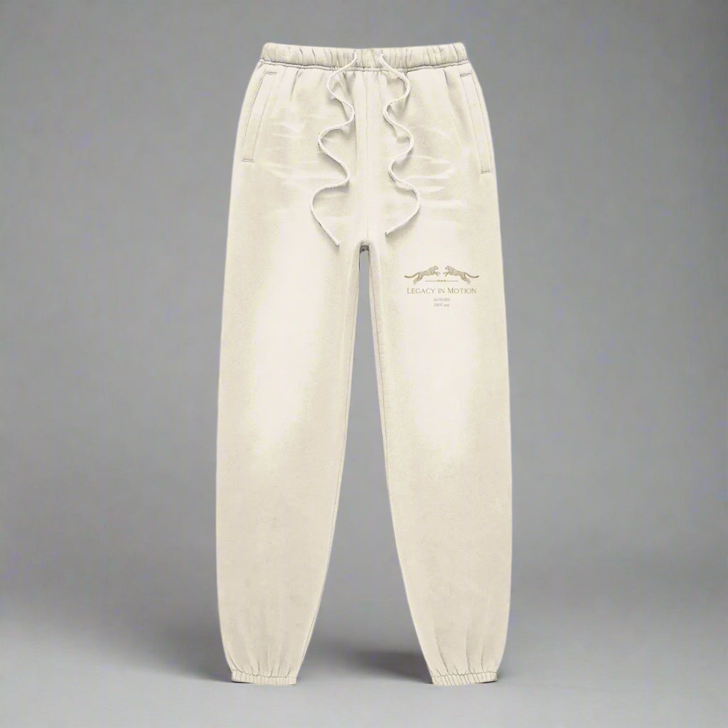 These pants move like they mean it. The Legacy In Motion Pants carry the signature twin cheetahs—symbols of speed, focus, and generational momentum—on a washed light-stone canvas that feels as effortless as it looks. The fit is relaxed but intentional, with soft cuffs and a clean silhouette. Whether paired with the matching hoodie or worn solo, these speak to anyone building something that doesn’t stop when they do.